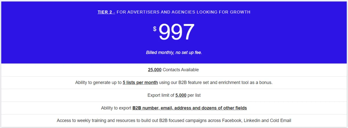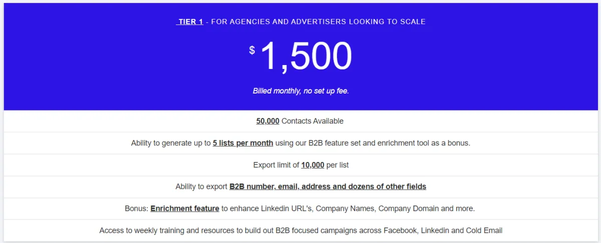 Unlimited Exports of B2B Phone, Email or full contact: Instead of paying up to 9 cents or more for a record, the plan is completely unlimited.