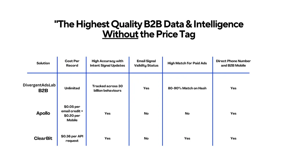 Use in Ads: By combing B2B AND B2C data, you are able to actually match these lists on ad platforms.
